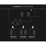 Die Tremonti "S"-Pickups sind mit zwei Lautstärke- und Tonreglern ausgestattet und bieten die nötige Aggressivität, um Tremonti's klangliche Anforderungen zu erfüllen. Zu den weiteren Ausstattungsmerkmalen gehören eine abgeschrägte Ahorndecke mit Flammenahornfurnier, ein breiter, dünner Ahornhals und eine Trem-up-Route, die die SE Mark Tremonti schnell spielbar macht und nur schwer in die Knie bezwingen lässt.