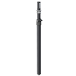 Stahlrohrkombination für die Verwendung in Subwoofern mit M20 Anschluss. Die Höhe wird mit einem Sicherungshaken fixiert und per Klemmschraube geräuscharm und spielfrei gesichert. Das schlanke Design der Spannschelle ermöglicht einen platzsparenden Transport und sorgt für ein dezentes Erscheinungsbild. Die nutzbare Höhe liegt zwischen 900 und 1.400 mm und wird in 5 Stufen zu 100 mm erreicht. Der patentierte Spreizdorn mit Schnellverschluss gewährleistet einen festen und spielfreien Sitz der Satellitenbox. Die Spreizbacken aus Kunststoff sorgen zudem für eine resonanzarme Verbindung zwischen Box und Rohr.